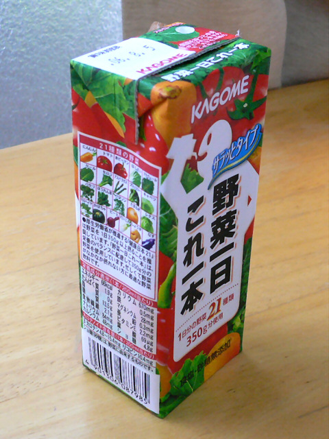 今CMで、草野仁とアンタッチャブルの山崎、俳優の黄川田将也がやってる“野菜一日これ一本”ていうカゴメから出てるやつ。厳密に言えば“トマト・ジュース”と“野菜ジュース”は違うのかも知れませんが、僕の中では一緒です。