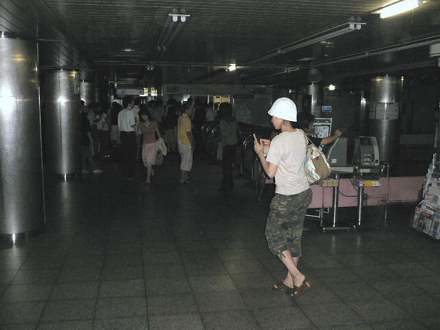僕はてっきり電車は動いているだろうと安易に考えていたんですが、甘かった。結構大規模な停電らしい。駅員さんが事情を説明しながら振替乗車券を配っています。とりあえずもらってみましたが、溝の口に向かうバス路線もないし、何となく職場に向かって歩き出しました。途中、信号機が点灯(8:10am)。暑い中歩くこと15分、用賀駅に到着しました。けれどまだ電車は動いていません。仕方なく唯一営業していたファーストキッチンに入って優雅に朝飯を摂り、さらに20分。何気なくホームに降りると、突然発車ベルが鳴り、電車が動き始めました(8:40am)。なんてタイミングが良いんだろう!