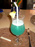 昼飯を食べようと入ったレストランで、念願の“青い飲み物”を注文しましたよ。とりあえず日本の皆に公言したのが「青い飲み物を、ビーチで飲んでくっから」ということで、ウェイターさんにメニューを見ながら“Which is blue one?”と言ったら、優しく“BLUE LAGOON”というカクテルを教えてくれました。目的の一つはこれで達成。それはともかくアルコールがキツくて、空きっ腹には効いた〜。しかも時間がなくて、そのまま昼飯は食いそびれる始末・・・。