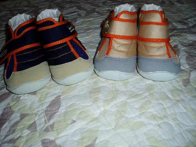 で、足のサイズを測ってみたら、なんと13.5cmもあるじゃないの! まだつかまり立ちしかできないのに、結構ビッグサイズ。体重も10kgあるらしく、どうやら身体が大きめのようで・・・。