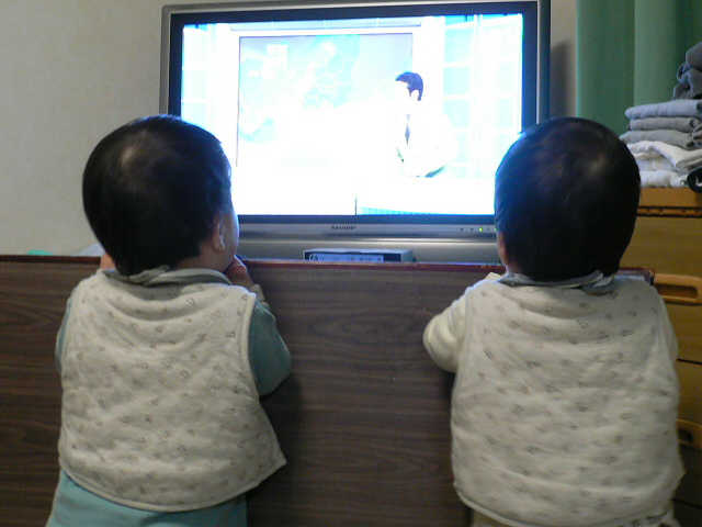 それと、天気予報が大好き。気象予報士が誰であろうと構わないみたい。とにかくお天気マークみたいな幾何学模様が好きらしいですね。二人してかじり付き具合も半端じゃありません。
