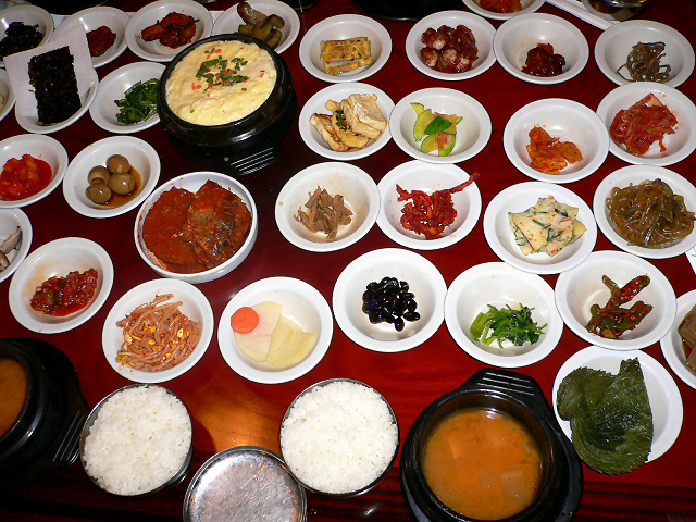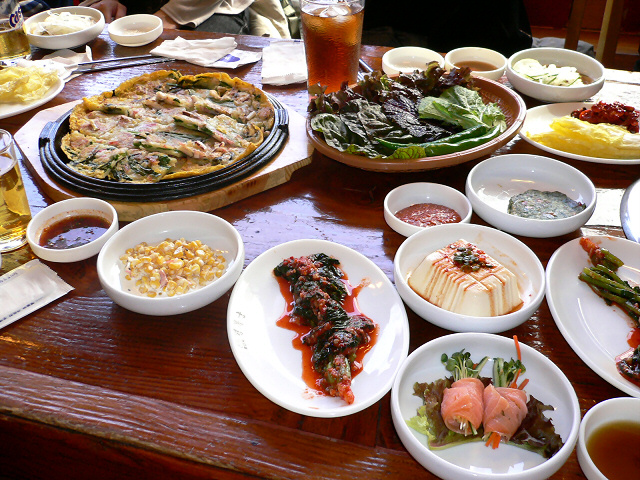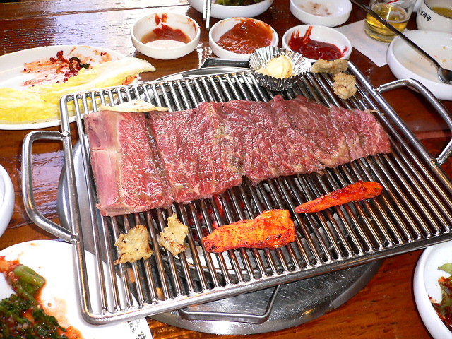 夕食はミョンドンにある“シゴルパプサン”という韓定食の店。今まで韓国での夕食は焼肉しか食ってこなかったのだけれど、韓国通の人の紹介で初挑戦した。ズラリと並べられたおかずの数々は壮観だし、肉は使われておらず、とってもヘルシー。しかも安い! 7人でビール2本入れて52,000ウォン。1人1,000円掛かってないんだよ。お腹も満足。