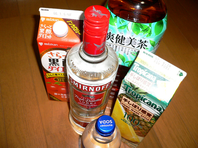 その後、夕食の買い出し。なんかもうめちゃめちゃ喉が渇いていたので、飲み物ばかり買ってしまった。勢いでウォッカとか買ってみたけど、誰が飲むんだよ。あ、俺か。ウォッカのパイン・ジュース割。美味しそ♥ よし、飲むぞ。