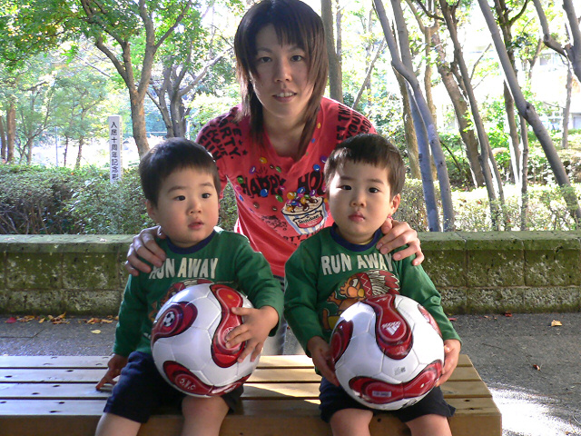 そんな二人に誕生日プレゼントをあげようと思い、サッカーボールを買いました。もちろん2個ね。誕生日は来月なんですが、勿体付けるのもアレなので、今日二人に渡してしまいました。すると球蹴りの好きなYutaは極度の興奮状態。「おっきい、おっきい」と連呼し、ボールを離そうとしません。Kotaも喜んでくれて、すぐに公園に試し蹴りしに行きましたよ。