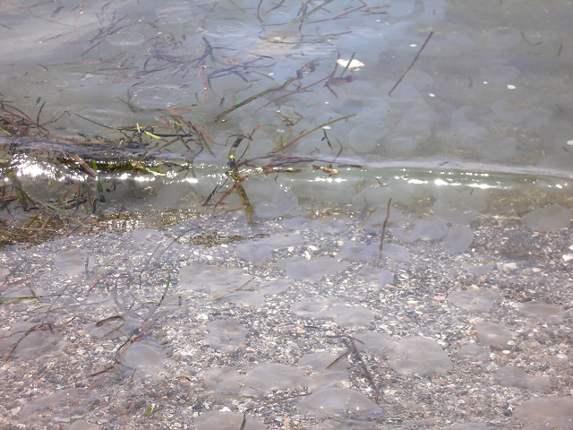 写真ではわかりにくいですが、クラゲの道ができていて、沖のほうまで連なってるの。甥っ子たちはそれが気持ち悪いものなのかもわからず、平気で遊んでいたけど、僕はドン引きでしたよ。
