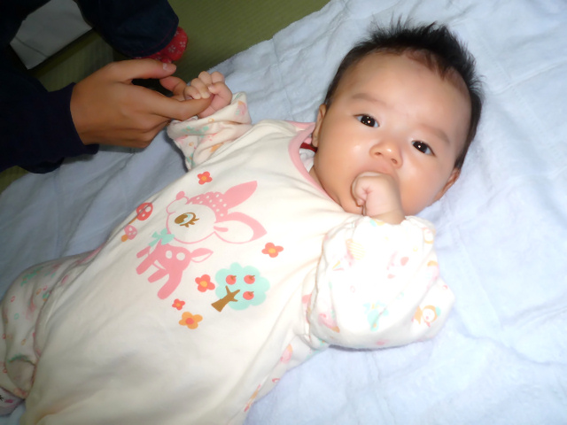 まだ2ヶ月の赤ちゃん。首の据わっていない赤ちゃんを触るのは久しぶりだぁ。ご機嫌が良かったので、抱いてあやすような出番もなく、ただ眺めているだけだったけど、赤ちゃんって見ているだけで心が癒されますよね。何が気を惹いたのか、ずっと僕のほうを見ていた赤ちゃん。とっても可愛かった♥ K.Yちゃんは産後ややふっくらしたみたいで、お母さん然としていましたよ。