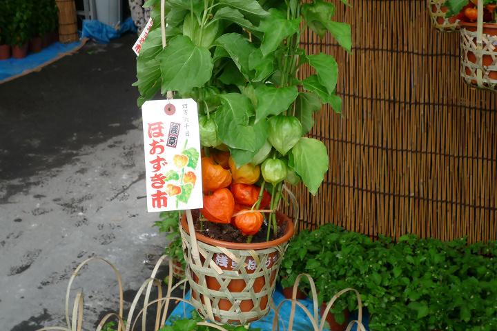 そもそもこの市は、芝の愛宕神社の縁日に始まり、「ホオズキを水で鵜呑みにすると、大人は癪を切り、子どもは虫の気を去る」といわれるなど薬草として評判であったようです。(浅草寺のサイトより)