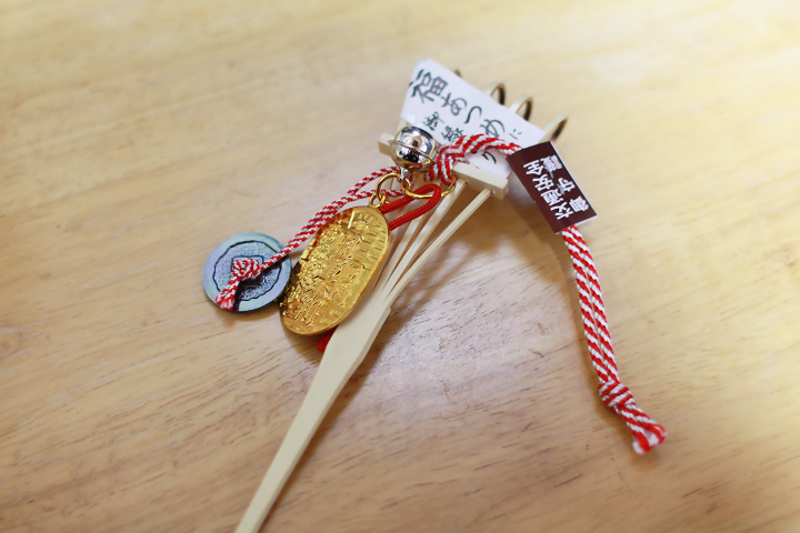 「縁起熊手は小さい物から徐々に大きくしていく」と聞き、まずは極々小さい500円の熊手を買いました。小さい福でも良いので、ぜひかき集めてもらいたい。