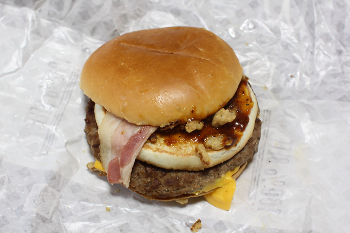 どんなものか食べたくなって、ヒョコヒョコッと店に入ってみたんです。予想通り「新作の“テキサスバーガー”はいかがですか?」などとバイトの女子店員が薦めてきましたよ。写真を見てもわからないので、「中に何が入ってるんですか?」と聞くと、困った顔をしながら「少々お待ちください」と奥へ引っ込んで、マネージャーみたいな人が説明をしてくれました。