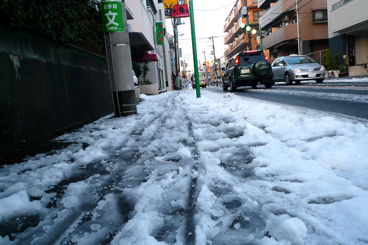 さて、食べ終わって地下鉄に乗り、世田谷まで帰ってくると、みぞれが完全な雪に変わっていました。路面にうっすらと積もっていて、革靴では足下が滑る。このまま降れば、数cmは積もるんじゃない? せっかくだから首都圏機能が麻痺するくらい積もって欲しいな。