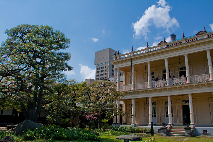 三菱財閥の創設者である岩崎弥太郎。その岩崎家の邸宅であり、イギリス人建築家ジョサイア・コンドル設計により明治時代に建てられた歴史的建造物と庭園です。在りし日は15,000坪余りの敷地に20棟もの建物が並ぶ大豪邸だったそうで、現在は洋館、和館、撞球室の3棟が残され、国の重要文化財に指定されており、観光客が多く訪れるスポットになっています。