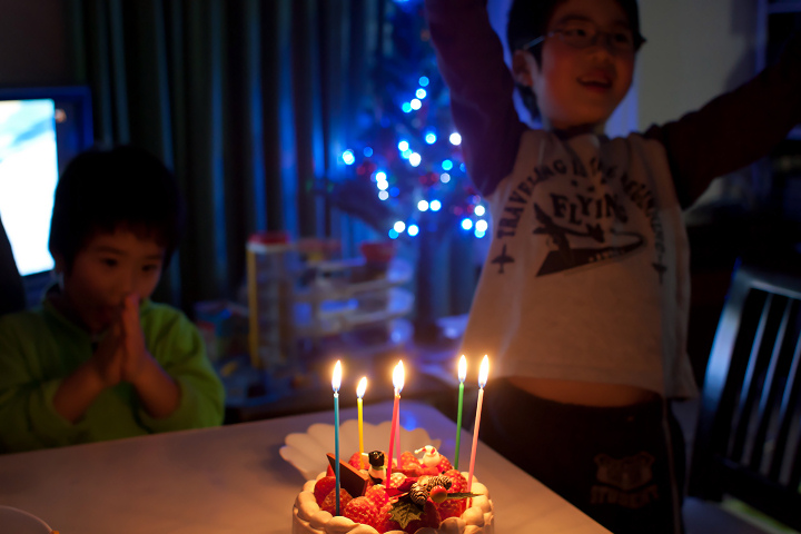 YutaとKotaは、イチゴのケーキをむさぼっていましたよ。予約するのを忘れていて、おととい慌ててケーキ屋に行き、「まだ大丈夫」と聞いて勢いで予約をしたのですが、考えてみたら結構お高いの。4,500円。今日ならイヴの売れ残りをもっと破格で買えたよね?