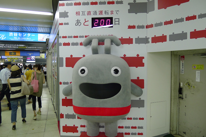 帰りに渋谷駅を降りると、謎のマスコット人形とともに「200」の文字が。