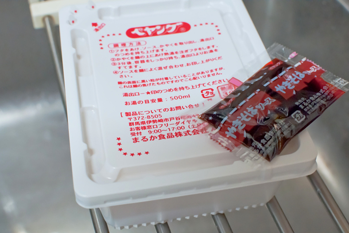 ペヤング「激辛!やきそば」という真っ赤なパッケージのカップやきそば。辛さレベルMAX!!という謳い文句とともに、「辛みが強いので、小さなお子様や辛みが苦手な方の飲食には十分ご注意ください」という脅し文句注意書き。