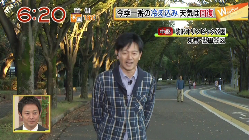 家に帰って「やじうまテレビ!」をつけると、ちょうど駒沢公園からの中継で天気予報を伝えているところ。それも「駒沢公園は皇居と並んでジョギングで有名な場所」などと紹介されて、走っている人たちを映しているじゃありませんか。