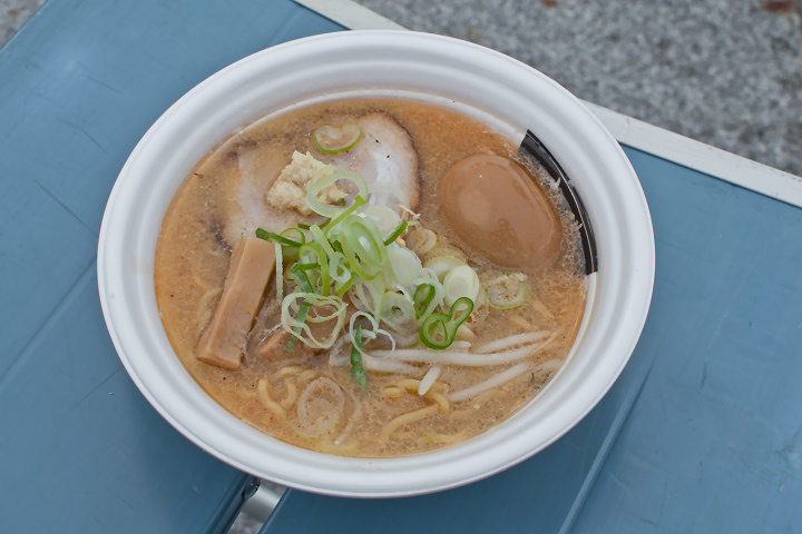 1杯目は「麺屋彩未×RAMEN IORI×麺屋つくし」というブース。味噌ラーメン至上最強コラボ!という触れ込みで、味噌好きの僕としては垂涎の一品。結構行列していたのですが、並びましたよ。25分ほど。とても美味しかったですが、驚くほどのインパクトはなかったかなぁ・・・。