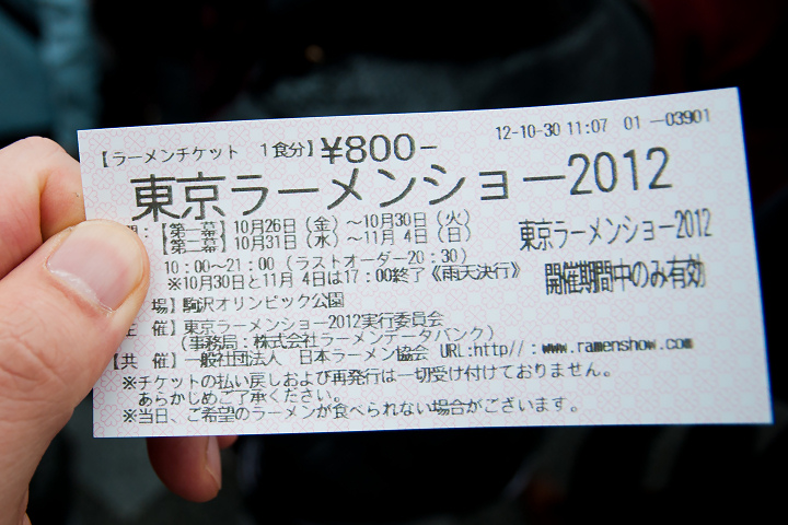 うるさくて寝ていられないので、出掛けることにしました。ちょうど今「東京ラーメンショー2012」がやっているので、ブランチがてらに。