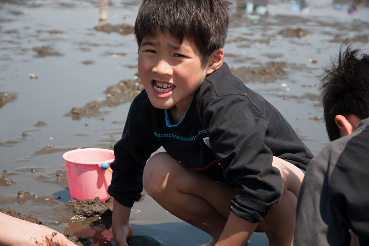 僕は基本的にアサリを掘るのがさほど楽しく思えないので、潮風に当たって時々子供たちの写真など撮っていれば良かったのですが、家族たちは皆、熱中していました。さすがB型軍団。