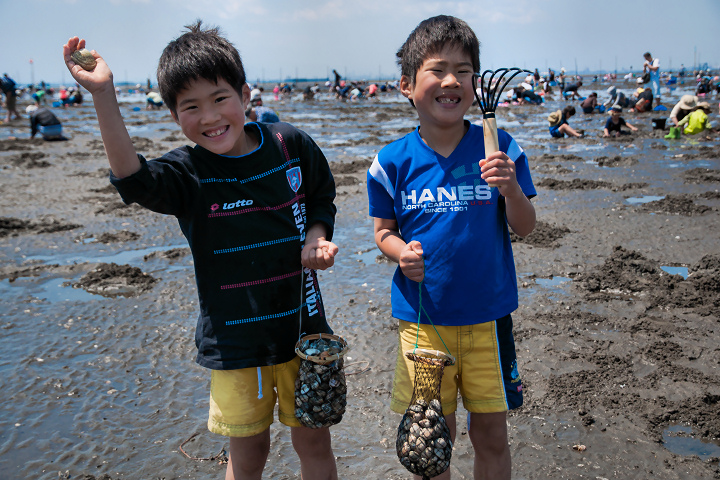 5月の大型連休中だったんですが、潮干狩り客は激減していても、ちょうど木更津にアウトレットパークがオープンしたばかりなのが影響してか、東京湾アクアラインへ合流する首都高湾岸線が大渋滞。それでも何とか引き潮の時間に到着できて、僕はおそらく30年以上ぶりの潮干狩りを楽しみました。子供たちも大満足の様子。