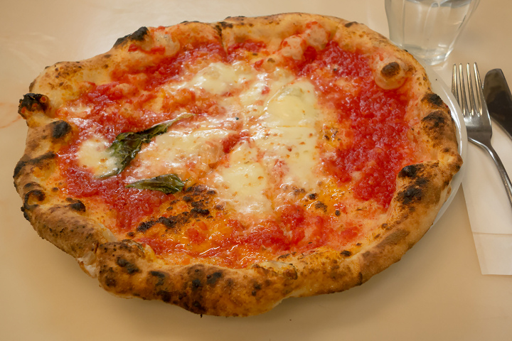 熱々のマルゲリータは、生地とトマトソースとモッツァレッラがシンプルの上にもシンプルで、これがナポリで認められるピッツァなのかぁ・・・っていう味わいでした。