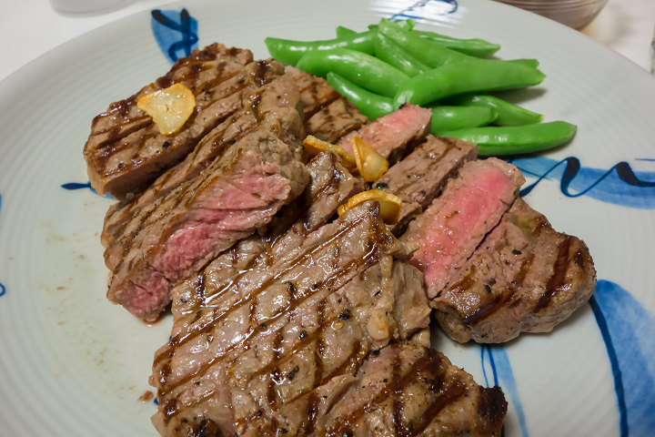 その代わり、米資本ということでアメリカ産の牛肉のなかなか質の良いものがあって、ステーキやカルビ肉を購入。国産牛とはまた違う肉っぽーいステーキでした。