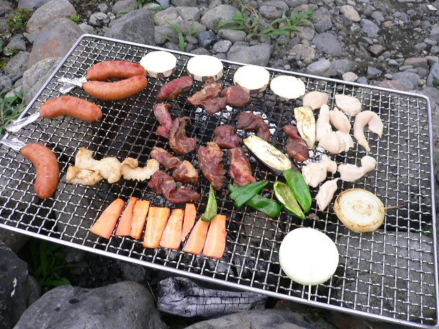 こんなに雨続きじゃ絶対に無理だろう・・・と思いながら、11:30amに向かったのは相模川。今日はみんなでバーベキューです。僕が到着すると、すでに若者が炭に火を点けようとしてるところでした。でも炭も空気も湿気っぽいもんだから、なかなか着火してくれなくて、延々1時間ほど悪戦苦闘していました。