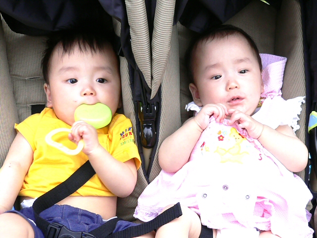 先ほどたちまちのうちに火を熾してくれたE.Kさんが、ご自慢の双子ちゃんを連れてきました。当たり前ですが、3月に会ったときよりも大きくなっていましたよ。
