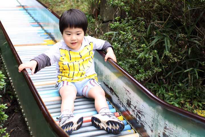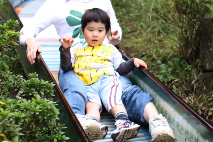 ここにはすっごく長い滑り台があるんです。その名も“ジャンボ滑り台”・・・って、その名も!ってほどのネーミングではないか。近頃、いろんな遊具で遊べるようになり、とくに滑り台は二人の大のお気に入り。1歳のときに遊んでいたような短い滑り台ではすでにもの足りないらしく、見ているほうもあまり手が掛からないので、ちょうどいい。