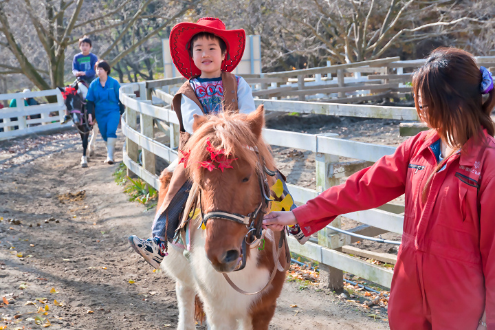 昼ごはんを食べた後、ポニーで乗馬をしました。1周350円。保育園の移動動物園のときには無料で何周もさせてくれたことを考えると、何だかなぁ・・・。しかし今の子たちは恵まれてますよね? 小さいうちから乗馬体験できるなんて。僕なんかこれまで一度も馬に乗ったことがないんだから。別に乗りたくもないけど。(←動物嫌い)