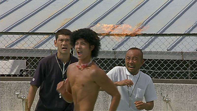 何きっかけでそれを思い出したのかは、もはや覚えていないんですが、矢口史靖監督の映画《ウォーターボーイズ》で、当時まだデビュー間もない玉木宏が、アフロヘアーに何かの火花が引火して、慌ててプールに飛び込むっていうシーンがあります。