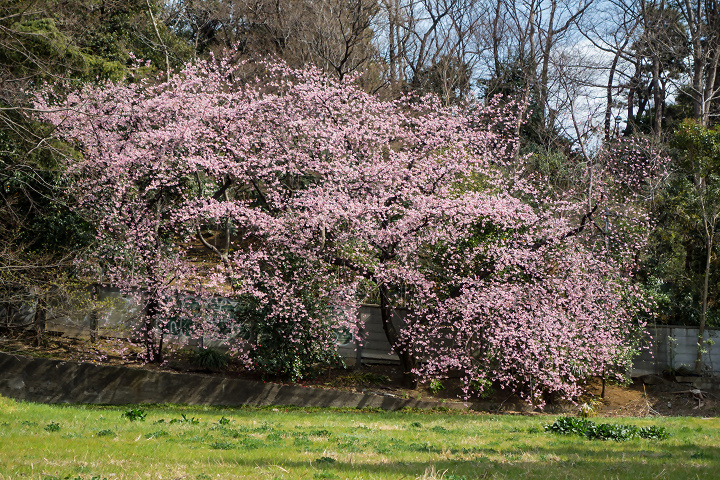 立入禁止エリアの奥に植わっているので、種類は何だかわからないのですが(あ、近くで見てもわからないけど)、少なくともソメイヨシノではないようですね。